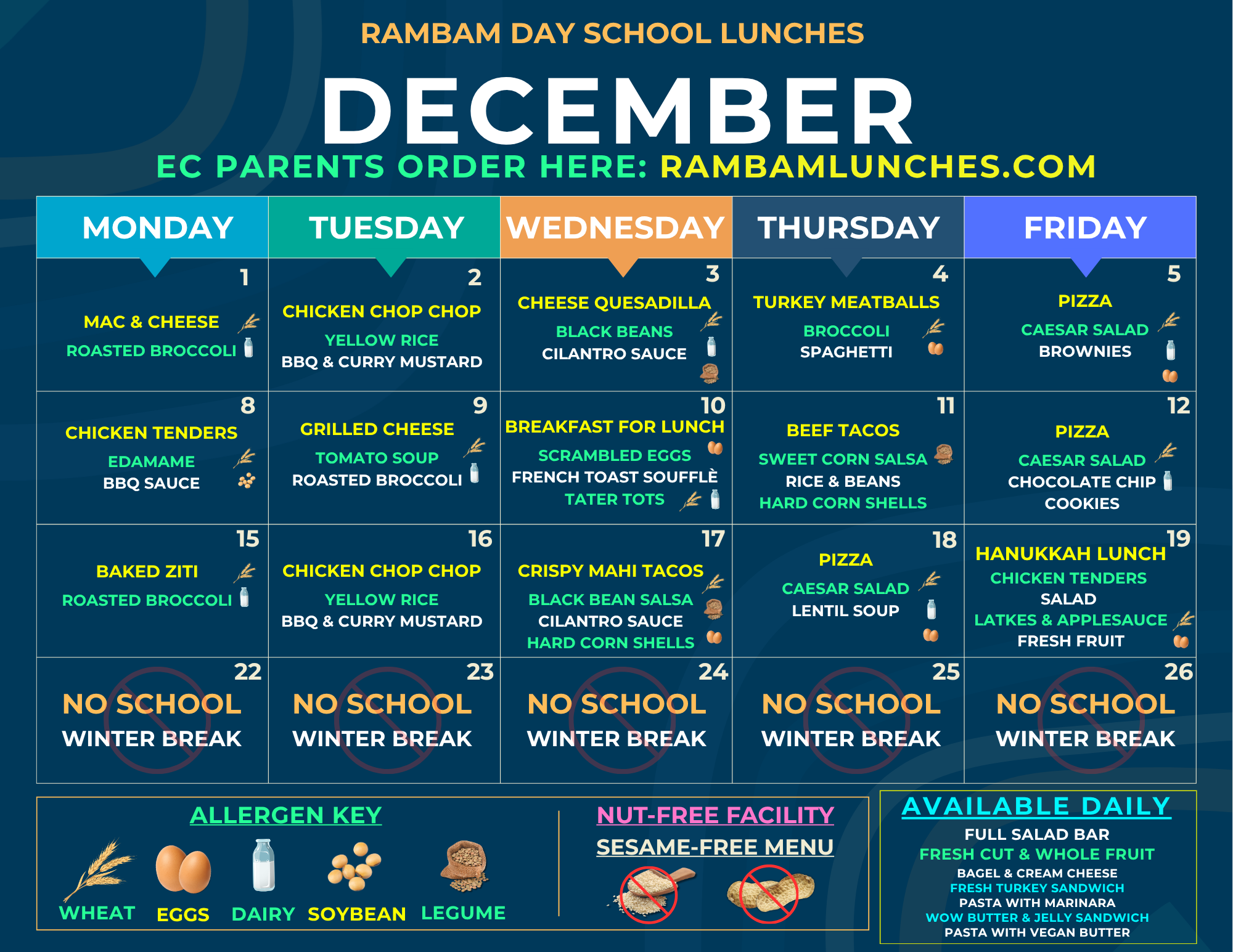 CLICK ON THE DATE BELOW TO ORDER EC LUNCHES